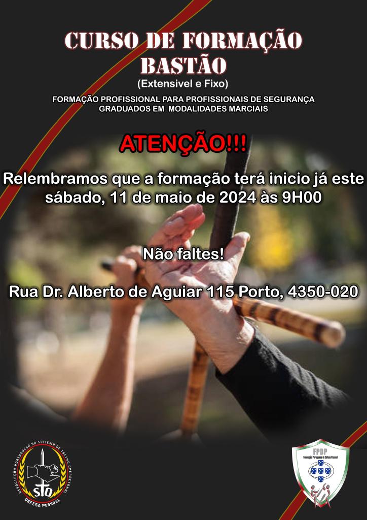 Irá decorrer nos próximos meses de Abril/Maio o Curso de Formação de Bastão indicado para Profissionais de Segurança/Graduados em Modalidades Marciais.